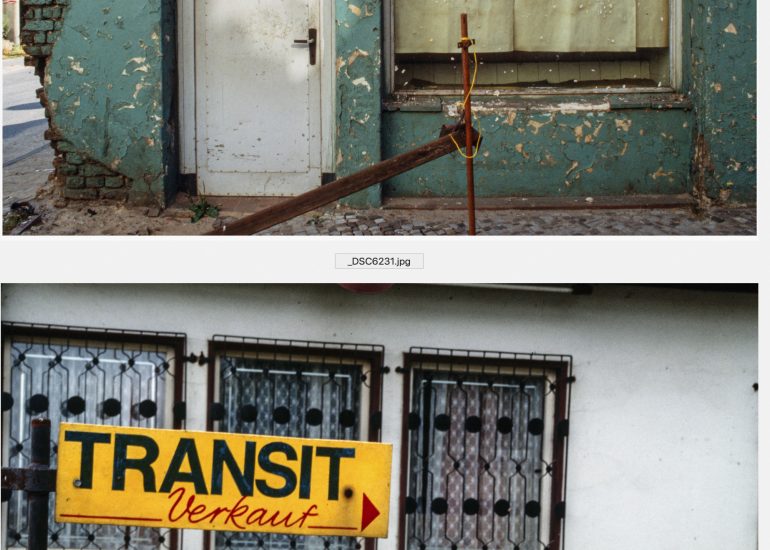 Die vorliegende Zusammenstellung ist eine beispielhafte Auswahl aus einigen hundert Schwarzweiß- und Farbfotografien, die zwischen 1985 und 1995 entstanden sind. Das Ausgangsmaterial der Fotografien bilden 6 x 6 bzw. 6 x 7 cm Schwarzweißnegative sowie Diapositive.