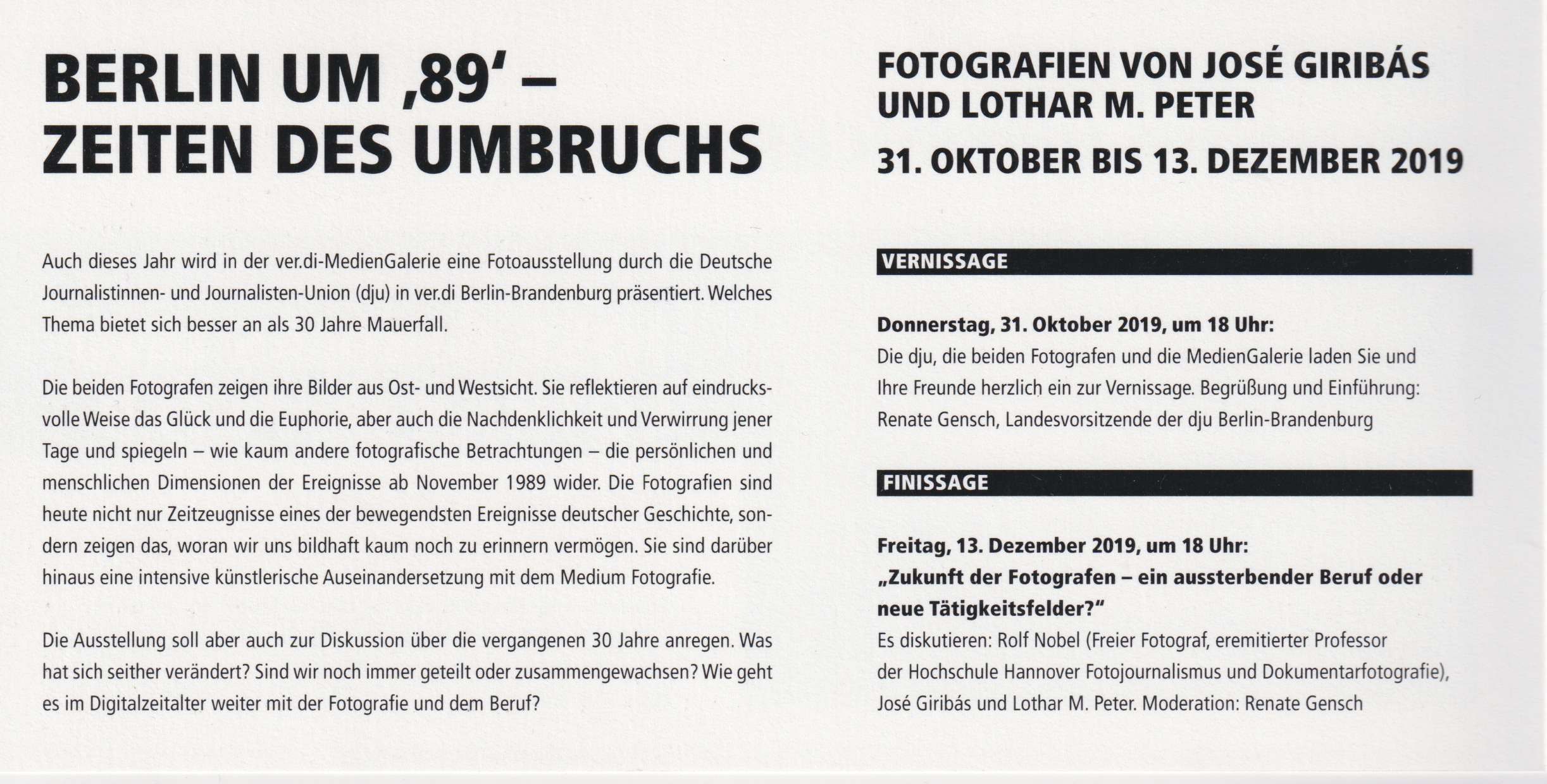 VER.DI MedienGalerie Berlin 31.10.2019 bis 13.12.2019